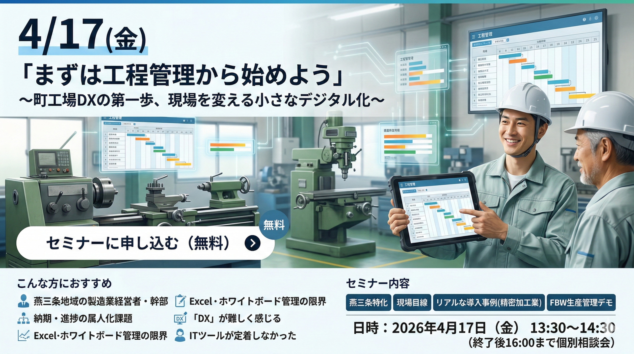燕三条地域に特化した、町工場の「現場目線」を大切にするデジタル化推進セミナーです。